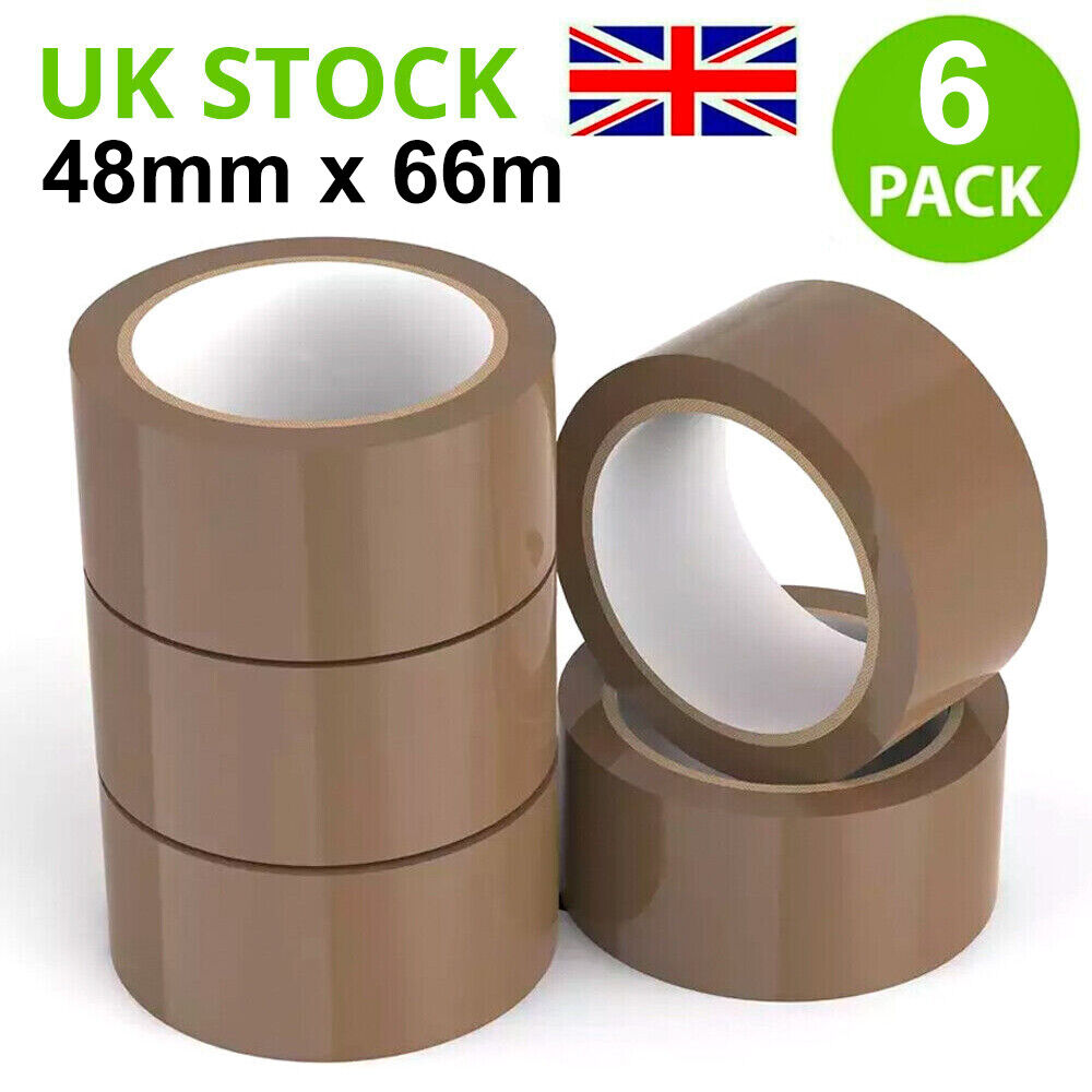 Home Packaging tapes 6 STRONG BROWN BUFF PARCEL PACKAGING PACKING TAPE 48MM X 68M BOX SEALING ROLLS Trade Pricing (inclusive of VAT & Delivery)